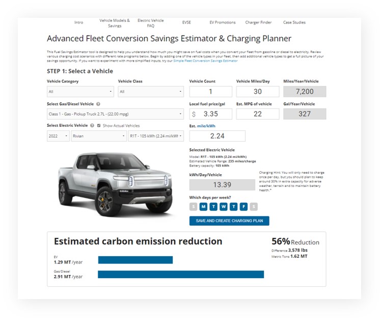 With proper information and tools, owners can examine and forecast different scenarios. For example, if they create a plan using relatively low power, level 2 chargers, schedule the charging during off-peak hours, and stagger vehicle charging, they can minimize demand charges. However, this may not fully meet their needs if they need to “top off” some vehicles during the day, so they can fold in some higher-powered units and see how it impacts their costs. Utilities offering resources like ChooseEV’s digital toolkit are able to let fleet owners create and compare scenarios, then send their results back to utility teams directly.
